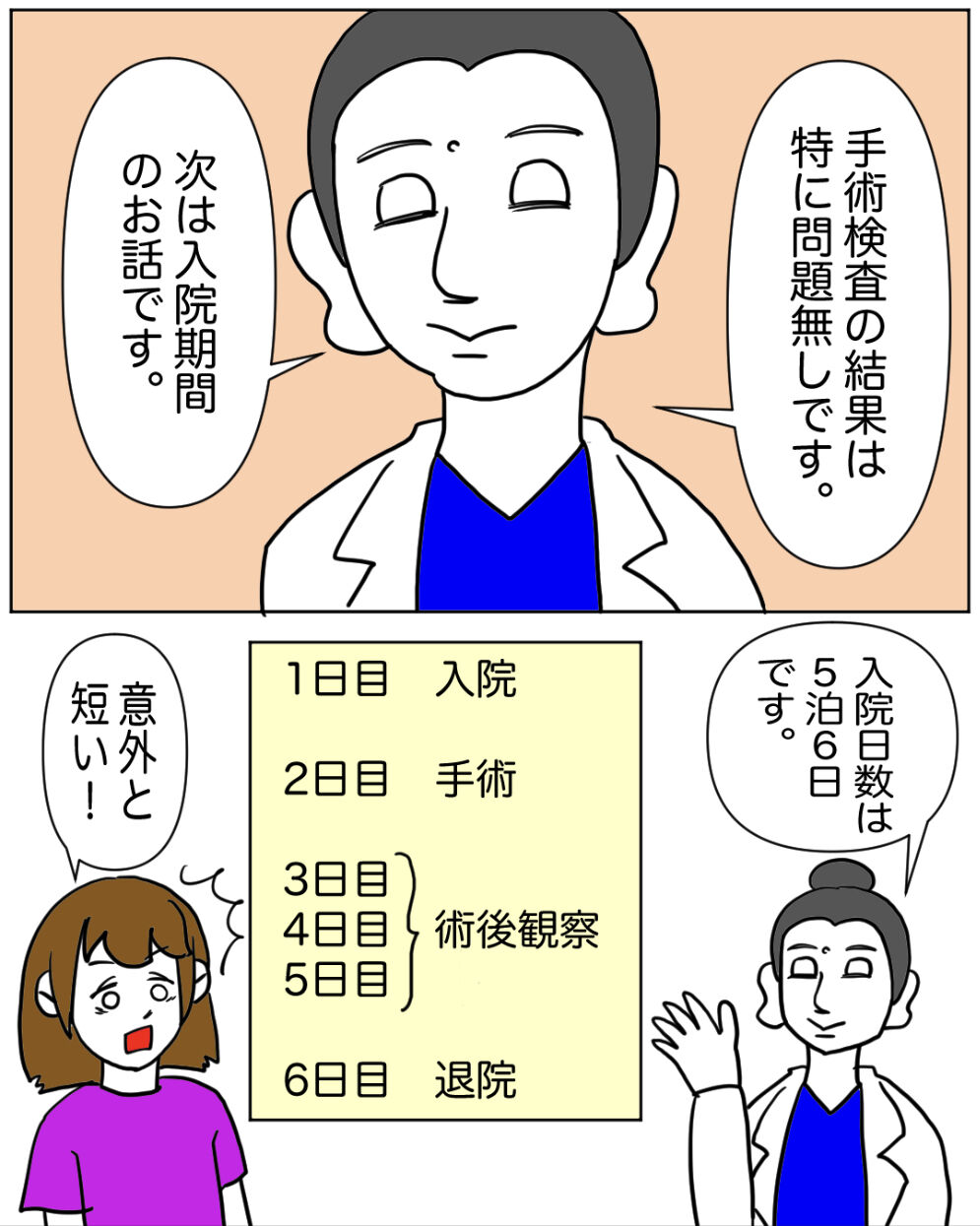 20代で片方の卵巣が半分になった話〈13〉 2023年09月07日 ※個人の体験談です。※コロナ前のお話です。※似顔絵を避ける為、医師は人以外になっています。入院期間が1週間無いのはちょっとびっくりでした。10日ぐらいあると思ってました。あと入院手続きのめんどくささにもびっくりでした。今までも何度か入院していましたが、その時はまだ子供で親にしてもらっていたので…お母さんめんどくさいのに何回もありがとう泣続きます。⇩続きを読む ⇩最初から読む < 前の記事次の記事 > コメント コメント一覧 (2) 1. ケイ 2023年09月11日 13:25 いつも楽しみに拝見してます 知り合いが今度卵巣嚢腫の手術を受けることになりました シオカカさまの記事わかりやすく、心の準備ができます! 貴方様の手術も無事にすみますように お身体大切になさいませ ありがとうございます 0 muramidojgin がしました 2. シオリ 2023年09月12日 12:19 >>1 ケイ様 コメントありがとうございます。 わかりやすいと言って頂けて とても嬉しいです♪ お知り合いの方の手術が無事に終わられて、 お元気になられる事を心より願っております。 0 muramidojgin がしました コメントフォーム 名前 コメント 記事の評価 リセット リセット 顔 星 情報を記憶 コメントを投稿する