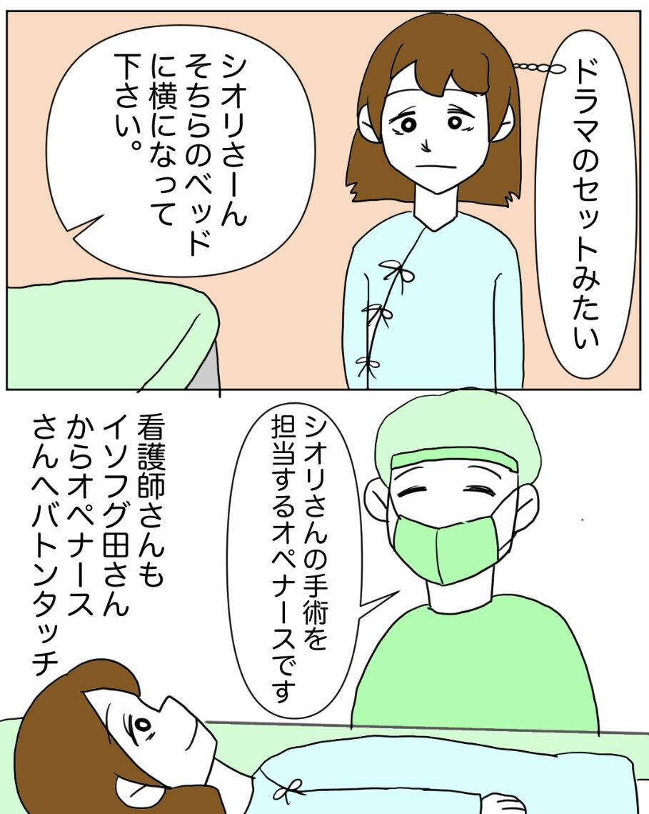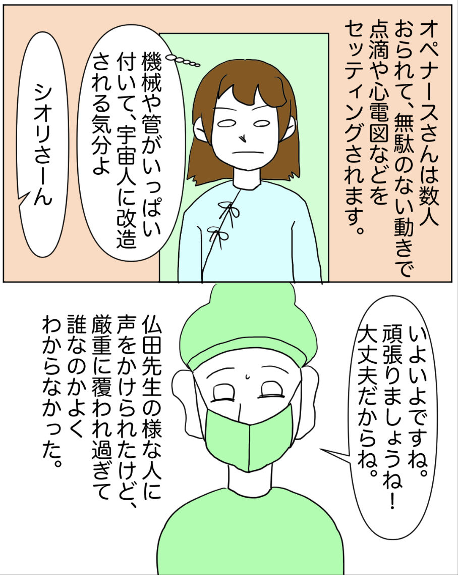 20代で片方の卵巣が半分になった話〈17〉 2023年09月24日 ※個人の体験談です。※コロナ前のお話です。※似顔絵を避ける為、人にはフェイク入っています。手術室はひんやりしてて、空気も澄んでいて、異世界感半端ない感じでした。ホンマに今から手術で体切られるのか…とドキドキしながらも麻酔に勝とうゲームする自分、嫌いじゃないゼ⭐️ちなみにこの麻酔に抗うのは全身麻酔する時はいつもやってます。きっとみんなやってる全身麻酔あるあるなはず!続きます。 ⇩続きを読む⇩最初から読む < 前の記事次の記事 > コメント コメントフォーム 名前 コメント 記事の評価 リセット リセット 顔 星 情報を記憶 コメントを投稿する