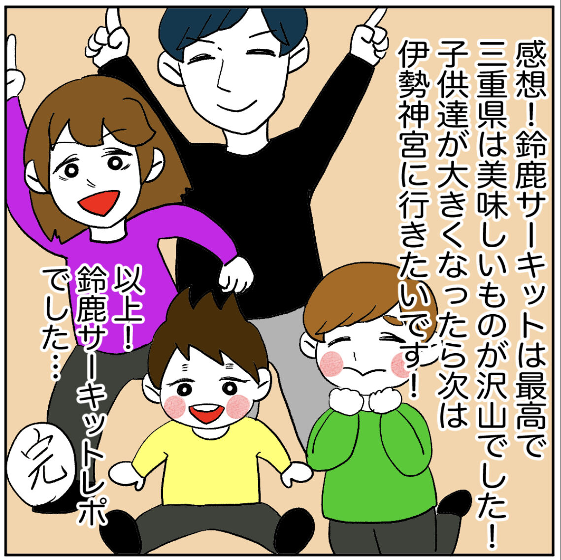 子連れ天国鈴鹿サーキットレポート〈下〉 2024年04月28日 ブログネタ:【公式】泊まって良かったホテル・旅館 に参加中! 連載中の漫画とは温度差激しめ!全三話の最終話です!前のお話↓ 鈴鹿サーキットもパークホテルも子連れには有難いサービスがいっぱいでとても楽しい上にとっても過ごしやすかったです!長男は『鈴鹿サキットまた行きたいよぉ』とずっと言っているので、またお世話になります。大人はまた牡蠣とエビ買いに行きたいぜぇ完1話目↓ その他の漫画 < 前の記事次の記事 > コメント コメントフォーム 名前 コメント 記事の評価 リセット リセット 顔 星 情報を記憶 コメントを投稿する